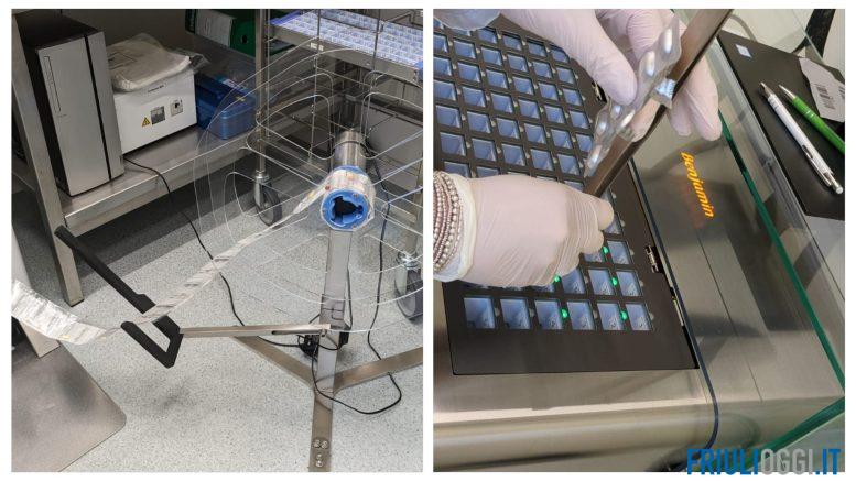 L’assessore alla Salute del Friuli Venezia Giulia Riccardo Riccardi stamattina ha visitato gli spazi della “camera bianca” della “Farmacia Favero” di Pradamano, accompagnato dai farmacisti Matteo e Michele Favero e Olga Orzicolo. Qui, da circa tre anni, è attivo un sistema per lo spacchettamento e l’impacchettamento dei farmaci unico in regione che prevede l’imbustamento della terapia farmacologica in piccole e pratiche confezioni singole trasparenti che recano il nome del paziente e l’orario di assunzione, evitando dimenticanze, limitando al massimo errori e sprechi di medicinali.