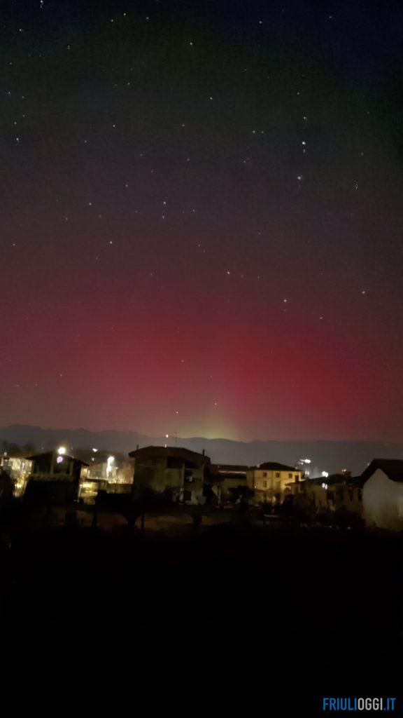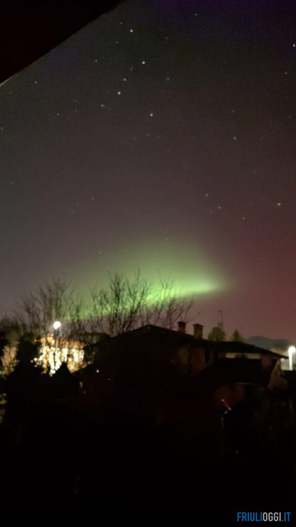 L’aurora boreale nei cieli del Friuli ieri sera.