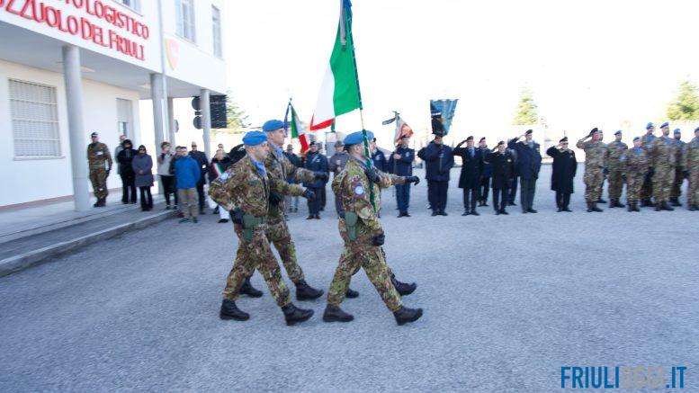Cerimonia di saluto alla caserma “Lesa” di Remanzacco alla Bandiera di Guerra del Reggimento logistico “Pozzuolo del Friuli”. Da febbraio, infatti, la Brigata di Cavalleria “Pozzuolo del Friuli”, guidata dal Generale di Brigata Nicola Mandolesi, sarà impegnata in Libano per sei mesi nella missione internazionale di sicurezza e assistenza che opera su mandato delle Nazioni Unite, assumendo la guida del Sector West dell’Unifil (United Nations Interim Force in Lebanon) e la responsabilità̀ del supporto logistico del settore italiano della Joint Task Force Lebanon nel Libano del sud.