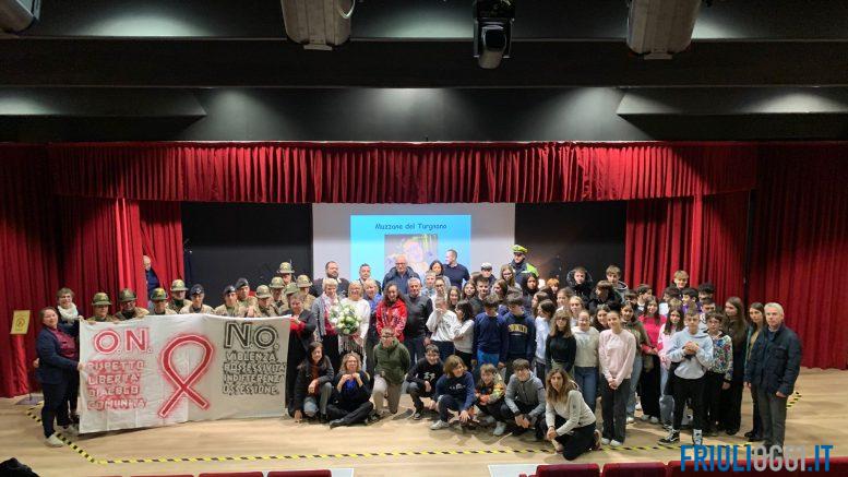 L’evento finale si è tenuto pertanto in Auditorium, aperto dai saluti dell’assessore alle politiche sociali Annarita Durì, con la partecipazione di rappresentanti delle istituzioni, tra cui il sindaco Daniela Briz con assessori e consiglieri comunali, la dirigente dell’Istituto Comprensivo Luella Guglielmin, la consigliera alle Pari Opportunità Maria Scarpa, mentre la presidente del centro antiviolenza SOS Rosa, Francesca Vuaran, assente causa malattia, ha mandato i suoi saluti. Presenti anche le Forze dell’Ordine, rappresentate dal Comandante della stazione dei Carabinieri Andrea Ercole e dagli agenti della Polizia Locale della Comunità del Friuli Orientale, che hanno ribadito il loro impegno a sostenere le vittime di violenza, con risorse e supporto per la comunità.