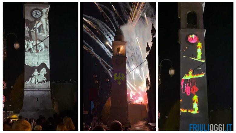 Uno dei momenti clou della serata è stato lo spettacolo sul campanile, con disegni e giochi di luce che hanno stupito i presenti. Prima il conto alla rovescia e poi il campanile si sgretola facendo comparire statue, fiamme, animali e vegetazione, prima del gran finale dei fuochi d’artificio.