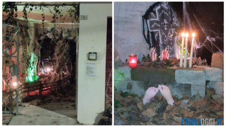 Zombie, lapidi, foglie secche, luci spettrali e quell’atmosfera tetra tipica di Halloween che fa venire i brividi, il tutto rigorosamente ecosostenibile: questa la bizzarra quanto iconica idea di Luca Frisan, 36 anni, giardiniere residente a Ronchis, che per il terzo anno consecutivo ha ricreato nel porticato di casa propria, quello che avrebbe tutte le carte in regola per apparire un vero e proprio cimitero.
