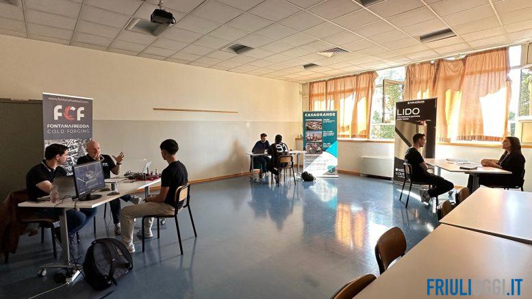 Stamattina gli studenti hanno sostenuto colloqui individuali con 18 aziende del territorio, che hanno presentato la loro realtà aziendale e le opportunità offerte. In preparazione all’evento, i ragazzi studiato e selezionato in anticipo le imprese con cui desideravano confrontarsi. Parallelamente, sono stati proposti agli studenti non impegnati nei colloqui in quel momento quattro laboratori tematici tenuti da esperti di Adecco, Regione FVG, Polo tecnologico Alto Adriatico, LEF.