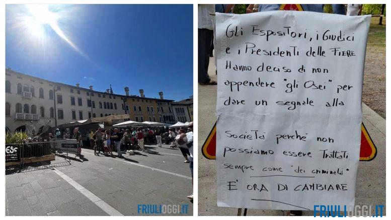 A spiegare il motivo della protesta anche un cartello: “Gli espositori, i giudici e i presidenti delle Fiere hanno deciso di non appendere gli osei per dare un segnale alla società perché non possiamo essere trattati sempre come dei criminali. E’ ora di cambiare”.