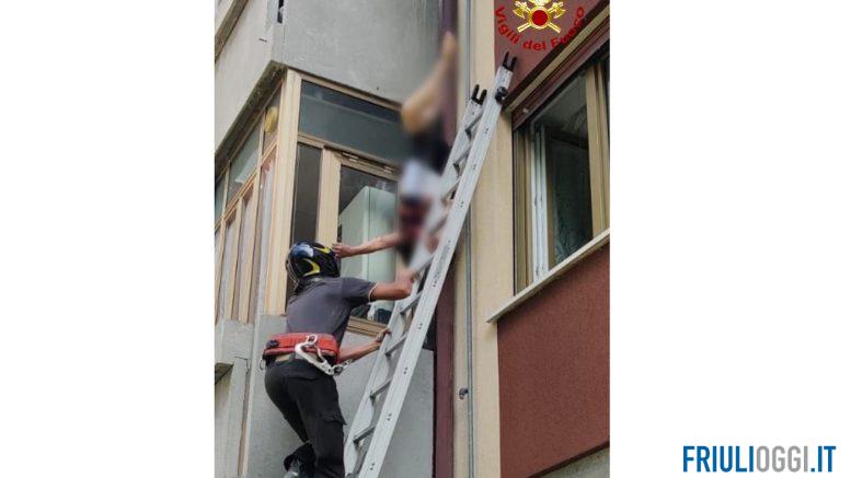 Momenti di paura, nella tarda mattinata, a San Canzian d’Isonzo, dove un’anziana è accidentalmente caduta dal terrazzo della sua abitazione, rimanendo incastrata tra il parapetto del secondo piano e la grondaia condominiale, a rischio di caduta.