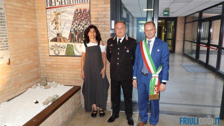 L’artista Paola Gortan, nota mosaicista sandanielese, in segno di apprezzamento e riconoscimento alla dedizione che l’Arma dei carabinieri mantiene nei confronti dello Stato italiano e della collettività, ha voluto donare al Comando Provinciale di Udine un proprio mosaico dal titolo “Nei secoli fedele”, che richiama il motto concesso ai Carabinieri nel 1933.