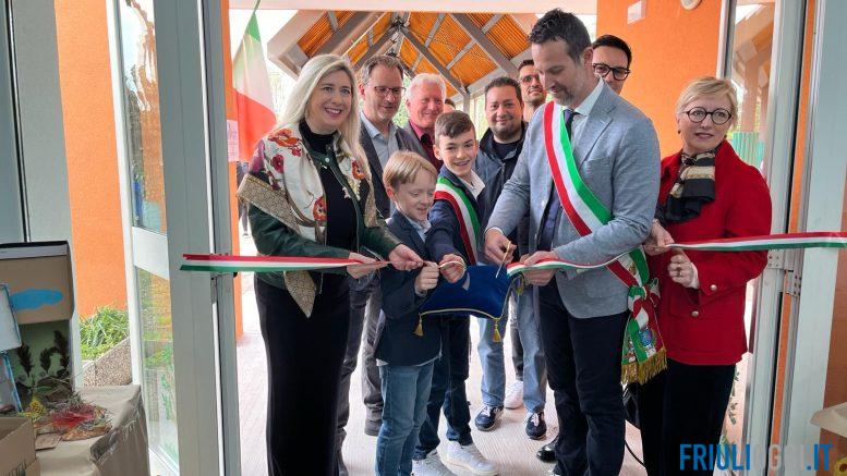 Cerimonia di inaugurazione per la conclusione dei lavori di efficientamento energetico della scuola primaria A. Zardini a Santa Maria la Longa che ha visto, fra gli altri, la partecipazione dell’assessore regionale alle Infrastrutture e Territorio Cristina Amirante, del sindaco Fabio Pettenà assieme al vicesindaco Alessandro Golosetti e all’assessore comunale scuole e servizi per l’infanzia, sviluppo tecnologico, edilizia privata Michele Cignacco e il sindaco del Consiglio comunale dei bambini e dei ragazzi (Ccr) Enrico Cesare Favetta.