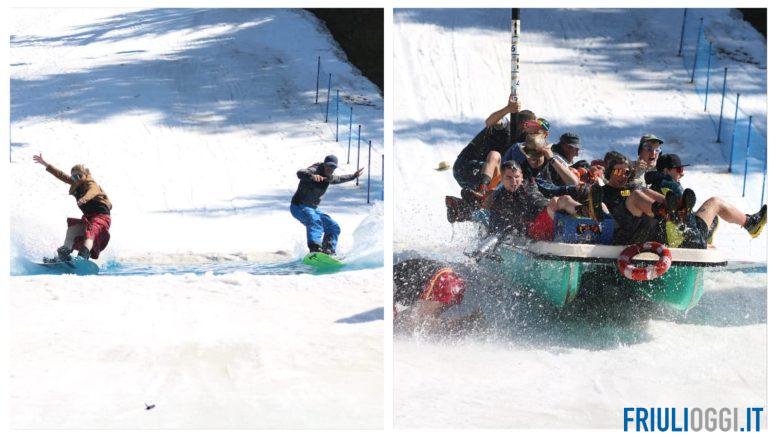 A rendere l’evento ancora più suggestivo ci hanno pensato i coloratissimi abiti dei concorrenti e le trovate fantasiose, come la discesa a bordo di un pedalò modificato per scivolare sulla neve, accolta dagli applausi divertiti di pubblico e partecipanti. L’iniziativa è stata organizzata dal Plodar Bergsteiger, il gruppo alpinistico di Sappada formato interamente da ragazzi under 35, che ha saputo dare vita a una festa autentica e coinvolgente, in una splendida giornata primaverile.