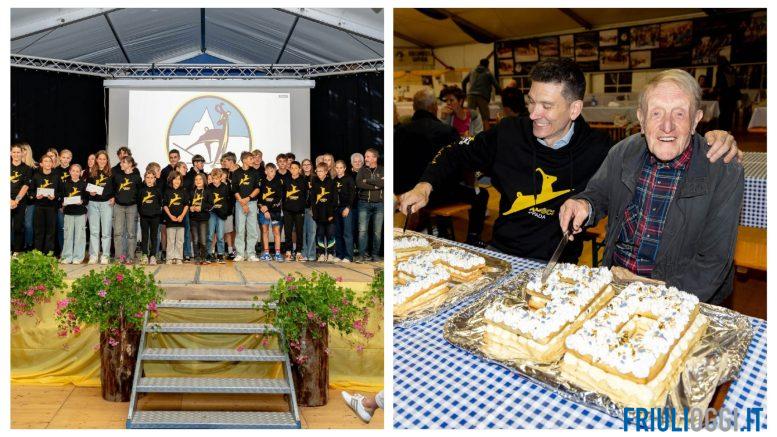 Ed è stata una festa nella festa: perché oltre a celebrare i 45 anni della loro storia, i Camosci hanno celebrato anche i 90 anni di una persona fondamentale per questa storia: il socio fondatore, il presidente ma soprattutto l’allenatore Eliseo Sartor, tecnico che ha fatto crescere generazioni di atleti e che per lo sci di fondo a Sappada è stato, e continua a essere, un patriarca. A fare festa a Eliseo, anche tre suoi colleghi di un tempo: Benito Moriconi (arrivato da Bormio), Demetrio Rela (da Asiago) e Angelo Genuin (da Falcade).