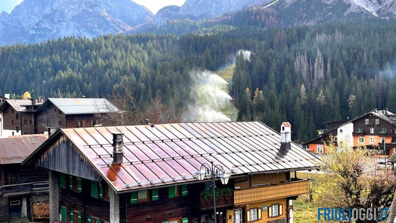 A Sappada è comparsa la prima neve, ma non è stata portata dal meteo: sebbene la stagione sciistica non sia ancora aperta, infatti, è stato avviato l’innevamento artificiale nelle aree sciistiche dei Campetti e Col dei Mughi. L’abbassamento delle temperature notturne sotto lo zero ha permesso di riattivare i cannoni per produrre neve artificiale, un’operazione indispensabile per garantire un buon manto nevoso in vista dell’inizio ufficiale della stagione invernale, programmato per il 7 dicembre.
