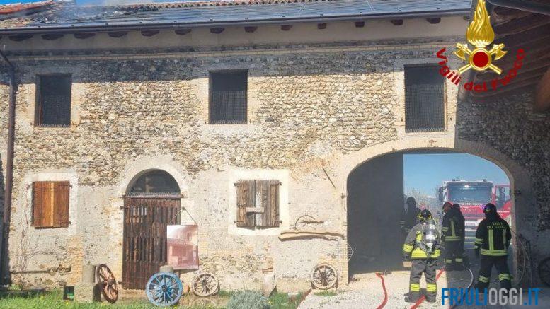 Dalle ore 11 circa di oggi, i vigili del fuoco del comando di Udine stanno infatti operando con una squadra, l’autobotte e l’autoscala della sede centrale e 2 squadre del distaccamento di Codroipo: l’incendio ha coinvolto l’impianto e una piccola porzione di copertura in legno del fienile di una casa colonica.