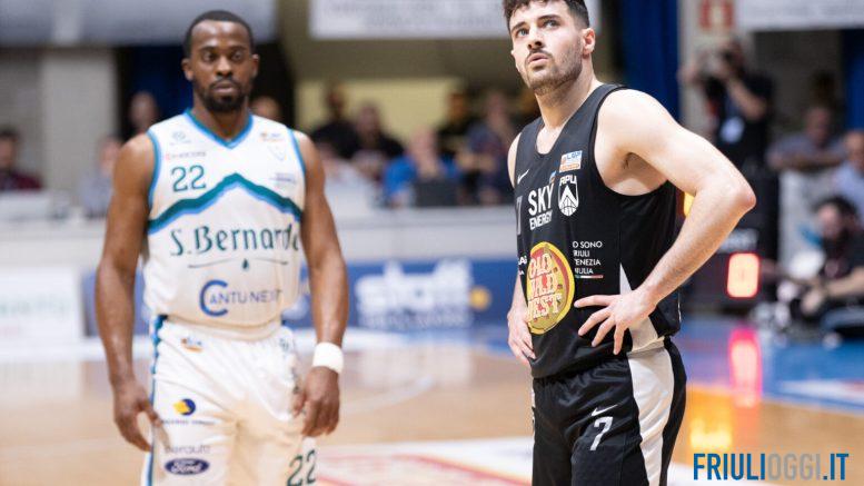 Cantù indirizza subito il match toccando la doppia cifra di vantaggio già nel primo quarto che termina sul 23 a 13, un quarto dove l’Apu tira 4 su 15 . Sostanzialmente la doppia cifra di vantaggio non verrà più recuperata: 38 a 27 all’intervallo, 56 a 45 dopo tre quarti. I friulani tentano soprattutto con Cannon e Alibegovic di non arrendersi, ma non c’è mai un sussulto che faccia pensare che il match possa girare ai favore degli ospiti. Finisce con Cantù che amministra il vantaggio ed Udine che non trova mai il canestro da tre. Si salva Jalen Cannon che segna 16 punti, Mirza Alibegovic con 12, mentre a tradire è nuovamente capitan Diego Monaldi che tira 1 su 8 da tre.