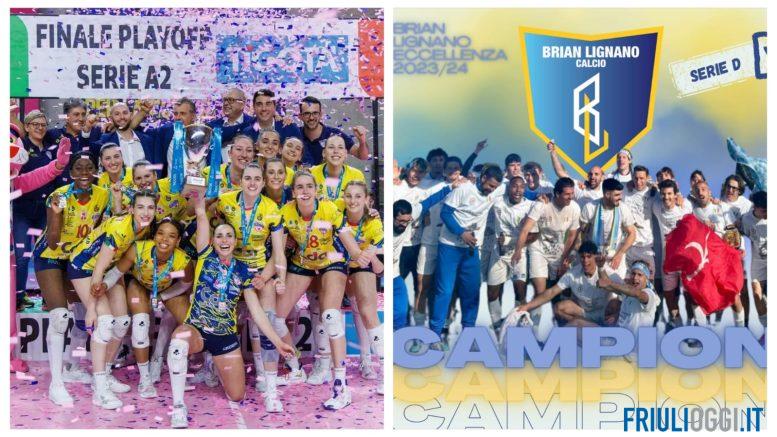 Grande entusiasmo in Friuli per le due promozioni raggiunte, nella giornata di giovedì, dal volley CDA Talmassons salito in A1 e dal Brian Lignano calcio, promosso in serie D.