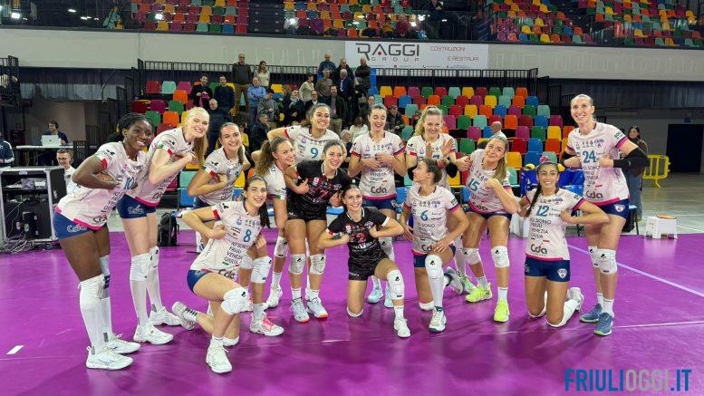 La squadra friulana si sblocca, trovando una vittoria che mancava dalla trasferta di Bergamo di metà Ottobre. Il prossimo step sarà un nuovo scontro diretto, questa volta contro la Bartoccini MC Restauri Perugia.