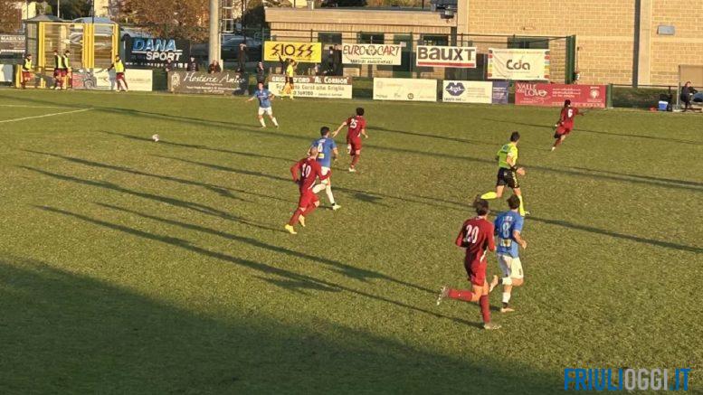 Sembra partire meglio il Cjarlins Muzane, ma al primo affondo offensivo l’Adriese passa in vantaggio quando Colombi, a centro area, riesce a servire Petdji libero, da due passi, di superare l’ex Bonucci. Sembra accusare il colpo il Cjarlins Muzane e Adriese che subito dopo potrebbe raddoppiare quando sul traversone basso di Moras l’accorrente Brugnolo spara alle stelle, prima che lo stesso centrocampista ospite, a metà frazione, rubi palla a Cuomo, avanzi per vie centrali e lasci partire il destro dal limite che si perde alto. Cresce il Cjarlins Muzane e dopo un rigore reclamato per un presunto atterramento di Calì, arriva il pari quando il tiro da fuori di Zarrillo è sporcato da Martinbianco tra i piedi di Belcastro il quale, da due passi, prolunga in rete. Gara viva e Adriese che subito dopo potrebbe segnare quando il colpo di testa di Moras, dal cross di Abdalla, centra il palo senza che Bonucci nulla possa, con il conto dei montanti pareggiato poco dopo da Calì il cui destro di prima intenzione, a raccogliere la corta respinta di Martimbianco, centra la traversa. Torna a farsi vedere l’Adriese dalle parti di Bonucci al 36’ con il portiere di casa costretto alla respinta sul diagonale di Colombi, prima che la squadra veneta torni in vantaggio al tramonto della prima frazione: il calcio di punizione di Maniero è respinto sul destro di Abdalla che dal limite, con il destro, insacca.
