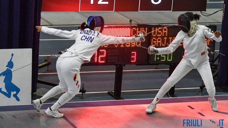 Si chiude con l’oro della Cina la tre giorni del Palaindoor di Udine per la Coppa del Mondo giovanile di spada femminile. Dopo il successo di domenica nell’Under 17 della canadese Yanka Sobus e quello di ieri nell’Under 20 della statunitense Regina Lee, oggi sul gradino più alto del podio, nella gara a squadre Under 20, sono salite Xinyao Li (argento nell’individuale), Xinyi Liang (bronzo ieri), Xinrong Zhang e Jaiyu Zhao. La Cina, dopo aver piazzato sei atlete tra le prime dieci della gara individuale, ha vinto con merito la prova a squadre, dominando in finale contro gli Stati Uniti per 45-27. Più combattuti, invece, i turni precedenti: le asiatiche hanno superato nell’ordine Bulgaria (45-41), Polonia (45-42) e Ungheria (42-41). Terzo posto per l’Ucraina che, nella finale per il bronzo, ha battuto per una sola stoccata l’Ungheria.