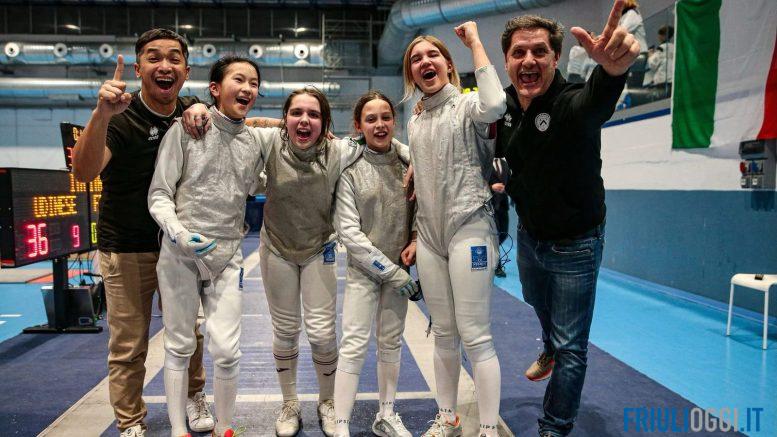 Dopo l’ottimo risultato delle spadiste dell’Associazione Sportiva Udinese – ASU, vice campionesse nazionali under 12 nelle scorse settimane (Matilde Pizzi, Vittoria Perugini, Sofia Urizio, Zoe Sabbadini), arriva il grande successo del fioretto femminile con la squadra under 12 composta da Allegra Parussatti, Elena Peres, Penelope Stoppani e Beatrice Guo Yu che si è laureata campione d’Italia al Grand Prix Kinder Joy of Moving a squadre, che si è tenuto a Baronissi (Salerno).