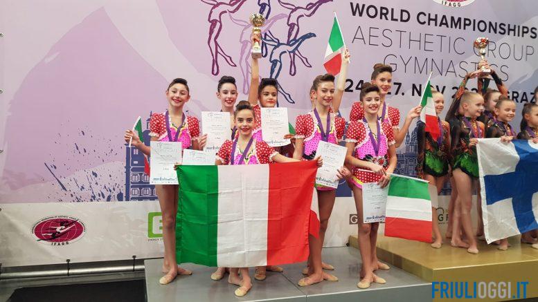 L’Italia trionfa ai Mondiali grazie alle ginnaste friulane. A coronamento della collezione di medaglie guadagnate dalle atlete, è arrivato l’argento a Graz in Austria alla tappa Steiermark Cup che si è svolta in concomitanza alla Coppa del Mondo di Ginnastica Estetica di Gruppo.