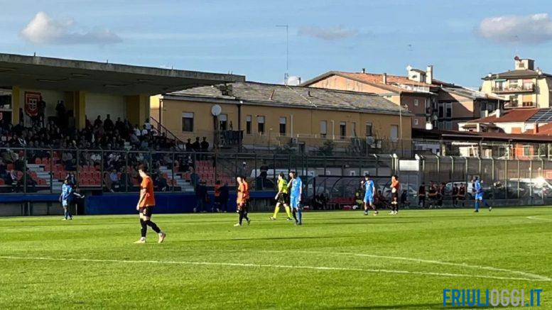 Ripresa con subito Cjarlins Muzane pericoloso, tanto che non è nemmeno terminato il primo giro di lancette sul cronometro quando Fyda prova ad approfittare dell’errore di Yabre in disimpegno, non riuscendo per un soffio a intercettare la palla in scivolata, con il Mestre che si fa vedere solo al 18’ quando dagli sviluppi di calcio d’angolo il colpo di testa dell’ex Frison è bloccato da Pollini. Sono le palle inattive il fattore principale e al 23’ il calcio di punizione di Osuji è girato a rete di testa da Bussi per la conseguente parata di Yabre, preludio al tentativo di Fyda il quale manca per un soffio la deviazione in rete sulla conclusione di Bassi. Con la beffa che, puntuale, si materializza al 38’ quando il Mestre, in una delle rarissime sortite offensive passa: il tiro cross dalla destra di Miccoli tocca il palo e termina la sua corsa in rete. E’ la rete che decide il match, si chiude con una sconfitta immeritata.