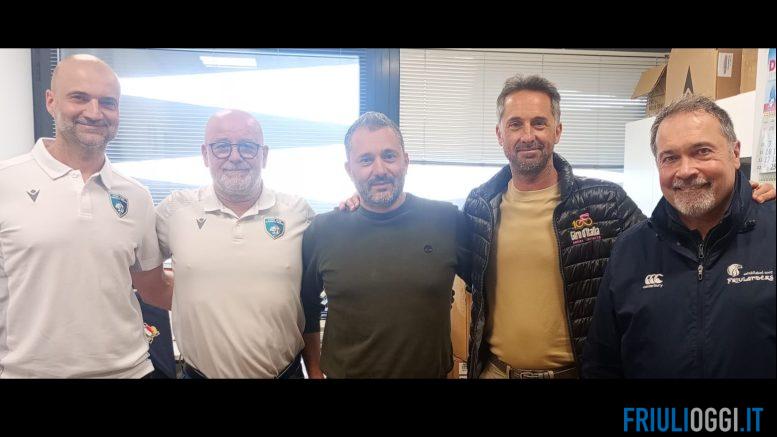 La firma dell’accordo ha visto la presenza dei presidenti e vicepresidenti delle due società: per la Rugby Udine, Andrea Cainero e Luca Diana, e per il RC Pasian di Prato, Sergio De Nobili e Sergio Pontoni.