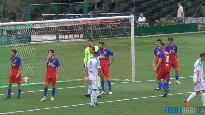 I ragazzi di Serini erano partiti bene nella prima frazione di gara e al 10’ ottima occasione sugli sviluppi di una punizione di Motta, servita bassa a Micelli: il centrocampista carnico ad incrociare ha chiamato alla gran parata De Mattia.