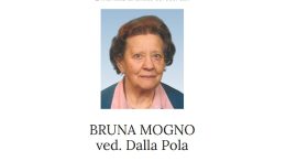 ved. Dalla Poladi 97 anni É mancata all’affetto dei suoi cari Bruna Mogno. Ne danno il triste annuncio il figlio Claudio assieme alla nuora Savina,…Read More→