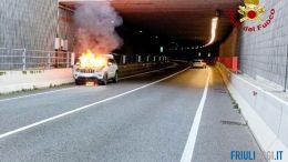Auto in fiamme sulla Circonvallazione Sud di Pordenone