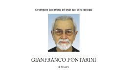 Di 80 anni Circondato dall’affetto dei suoi cari ci ha lasciato Gianfranco Pontarini. Ne danno il triste annuncio la moglie Margit, i figli Renato con…Read More→
