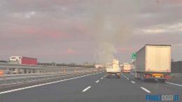 Incendio sulla A4, camion si ferma in piazzola e prende fuoco