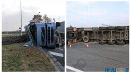 Incidente a Codroipo, camion carico di trucioli di ferro si ribalta alla rotonda