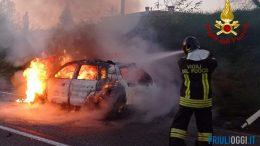 Scontro tra moto e auto a San Daniele, i mezzi prendono fuoco: muore un motociclista