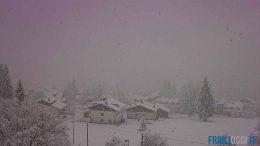 Friuli imbiancato, la neve torna a farsi vedere anche sotto i mille metri