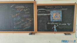Il grazie della bimba alla Protezione Civile del Fvg che ha pulito la scuola a Roncadelle