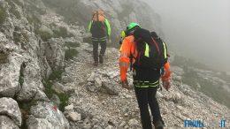 Si lussa una spalla in ferrata, ma le nuvole bloccano l’elicottero: i soccorsi arrivano a piedi
