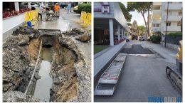 Sotto la strada, il vuoto: scoperta una voragine durante i lavori alle aiuole