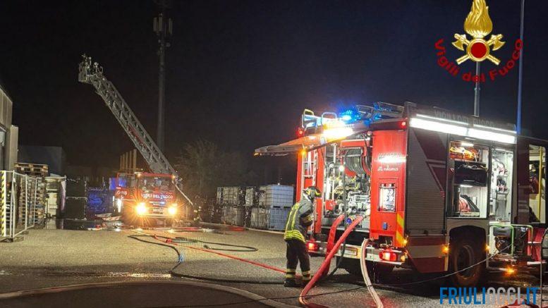 Incendio nella notte in un capannone nella zona industriale di Talmassons. L’allarme è scattato alle 21.20 circa del 2 ottobre: sul posto i Vigili del fuoco del comando di Udine con una squadra, due autobotti, l’autoscala e il funzionario di guardia della sede centrale e due squadre del distaccamento di Codroipo.