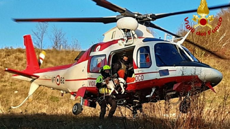 I vigili del fuoco di Gemona assieme al personale Speleo Alpino Fluviale e all’elicottero Drago 82 dei vigili del fuoco di Venezia hanno recuperato l’animale che era finito nella scarpata mentre inseguiva una preda.
