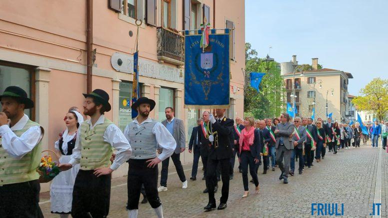 Il corteo si è quindi mosso verso il Duomo, dove è stata celebrata la Santa Messa in friulano, accompagnata dal Coro “San Pietro Apostolo”, con letture e preghiere anche in sloveno e tedesco. Terminata la funzione è stata la volta dell’esibizione del Gruppo folkloristico “Chino Ermacora”. Dato il benvenuto alla delegazione dei cicloturisti della FIAB Regionale, i presenti si sono spostati in sala Margherita per le celebrazioni civili, con l’Inno del Friuli, la lettura della Bolla imperiale e il tradizionale scambio della bandiera tra i sindaci. A seguire è stato trasmesso il nuovo video del canale YouTube in lingua friulana, YouPalTubo, La bandiere furlane tal spazi, in cui si racconta l’incredibile storia dell’astronauta di origini friulane, Gregory Thomas Linteris, che ha portato la bandiera del Friuli nello spazio. Per l’occasione presente anche Desiree Chiappo Debegnach, youtuber che ha raccontato la vicenda, e il protagonista dell’avventura “spaziale”, in un video messaggio. A chiudere la mattinata l’esibizione della soprano Maria Giovanna Michelini, accompagnata all’arpa da Serena Vizzutti.