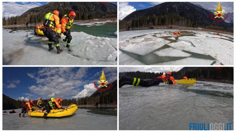 L’addestramento dei vigili del fuoco ai Laghi di Fusine.