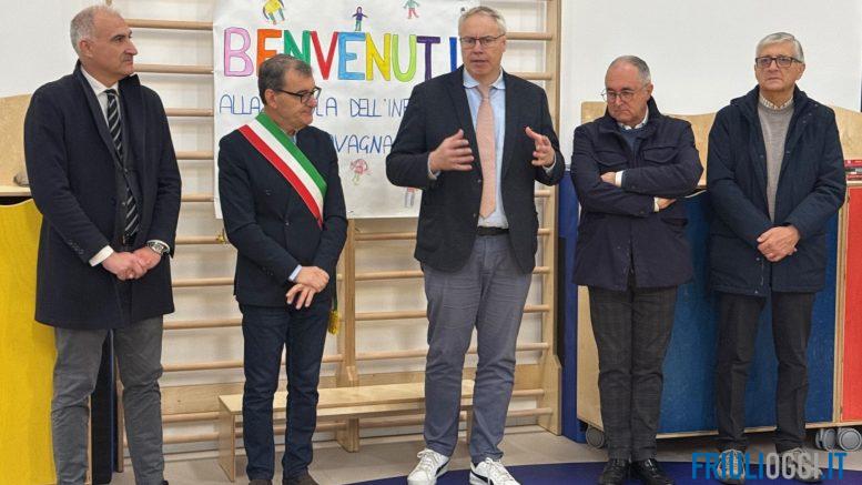 È stato inaugurato questa mattina il nuovo asilo di Tavagnacco, un progetto che coniuga innovazione tecnologica, efficienza energetica e design partecipativo, rappresentando un modello di eccellenza per tutta la regione. Alla cerimonia, organizzata insieme ai piccoli studenti, hanno partecipato il presidente del Consiglio regionale Fvg Mauro Bordin, il collega Moreno Lirutti, il sindaco di Tavagnacco Giovanni Cucci e il sindaco di San Daniele Pietro Valent. Presenti anche Casimiro Fornasiero, presidente di Hera Servizi Energia, e Giorgio Golinelli, amministratore delegato della stessa azienda, responsabile della riqualificazione dell’edificio.