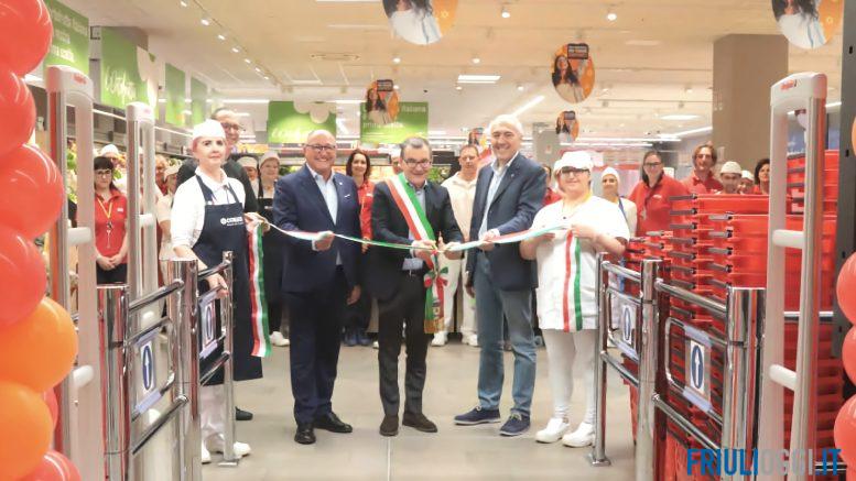 Il sindaco di Tavagnacco Giovanni Cucci e l’amministratore delegato di Commercianti Indipendenti Associati – Conad Luca Panzavolta hanno tagliato il nastro del nuovo supermercato Spesa Facile inaugurato questa mattina in via Nazionale 127.