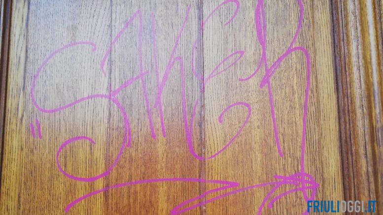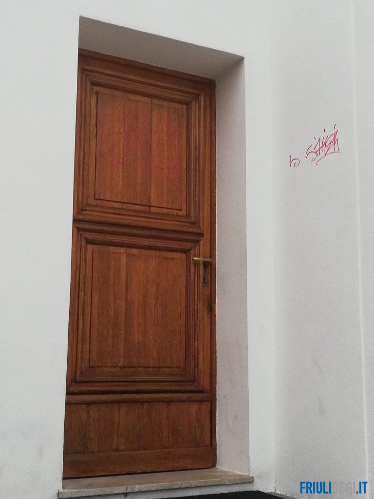 Era appena stata riverniciata, ma evidentemente qualcuno ha pensato fosse il luogo migliore dove lasciare la propria firma: dei vandali, infatti, hanno imbrattato la porta della sacrestia della Parrocchia di Colugna.
