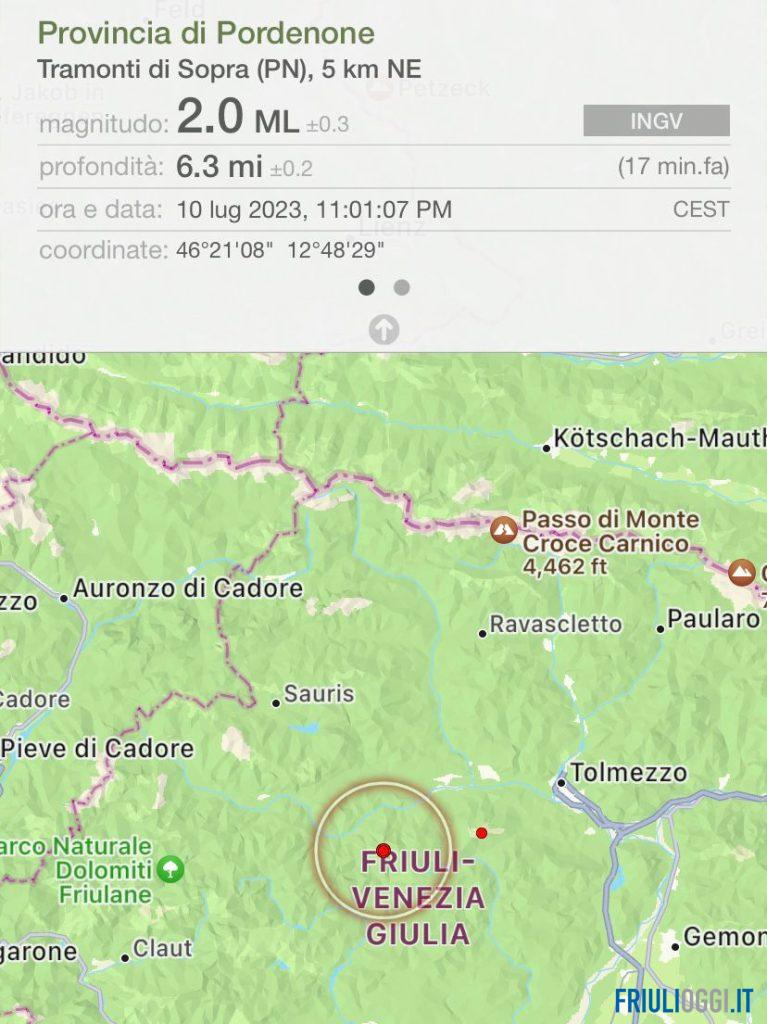 Scossa di terremoto in Friuli con epicentro a Tramonti di Sopra.