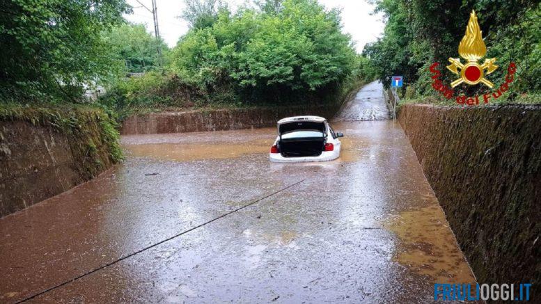 Un’auto è rimasta bloccata nel sottopasso allagato a Tricesimo.
