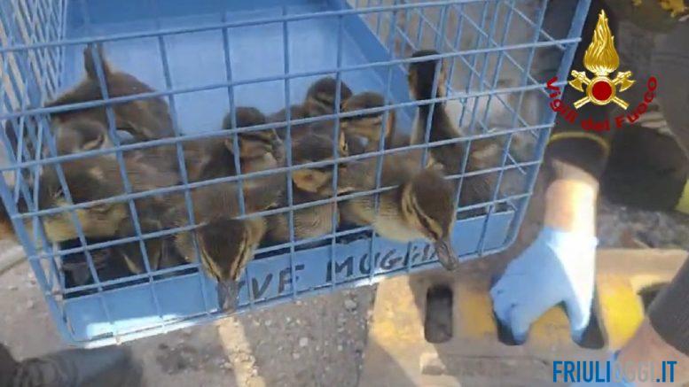 Alle ore 18.10 circa, su segnalazione di un passante che aveva sentito sei pigolii giungere da un tombino stradale, la squadra dei Vigili del fuoco del distaccamento di Muggia è intervenuta in Via Flavia, all’altezza del civico 120, per soccorrere una nidiata di anatroccoli che era caduta nel pozzetto sotto al tombino.
