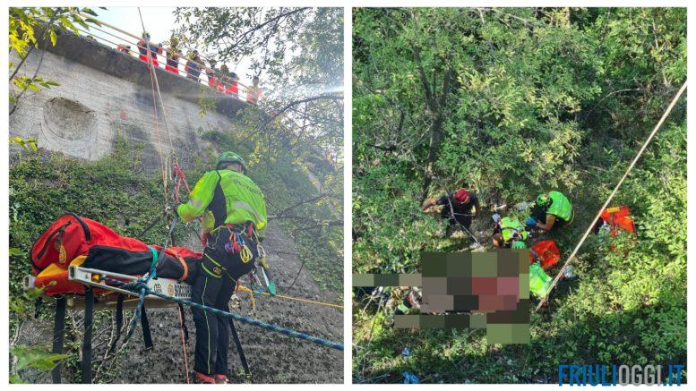 I soccorritori del Soccorso Alpino si sono calati direttamente da lei con le corde dal bordo strada, portando con sé la speciale barella. Sul posto l’hanno stabilizzata e imbarellata – si è procurata una probabile frattura alla caviglia e un trauma toracico – e sollevata al bordo strada tramite l’autoscala dei Vigili del Fuoco. Una volta in strada è stata affidata all’ambulanza.