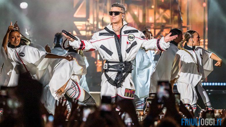 Un concerto che più che un’esibizione è stato un abbraccio, un viaggio, una lettera d’amore all’intrattenimento. Così Robbie Williams ha conquistato Trieste, regalando a oltre 28mila spettatori una serata che resterà nella memoria collettiva della città. Due ore abbondanti di musica, emozioni e confidenze, in uno Stadio Rocco gremito e trasformato in un gigantesco palcoscenico dell’anima.