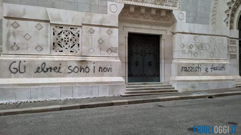 Le scritte contro gli ebrei sulla sinagoga di Trieste.