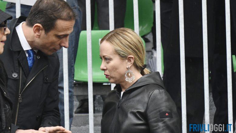 Fedriga e Meloni si sono poi ritrovati sul palco delle autorità assieme al ministro della Difesa Guido Crosetto e al presidente dell’Associazione nazionale Alpini Sebastiano Favero, che poco prima avevano scortato il labaro dell’Ana con le 212 medaglie al valor militare.