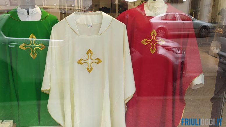 Tra tutte le vetrine, però, spicca anche quella del negozio Candotti di via Treppo che ha declinato il tricolore sui prodotti particolari che vende, ossia quelli di arta sacra e articoli religiosi: e così sul lato che si affaccia lungo la via sono comparse le tuniche per i sacerdoti secondo la scala cromatica della bandiera, verde, bianca e rossa, un tema che ritorna in tutti i paramenti liturgici esposti, dalle casule, alle stole. Insomma, per gli Alpini un benvenuto a 360 gradi.